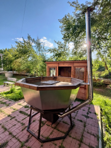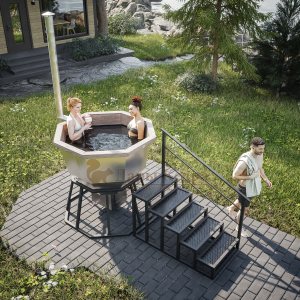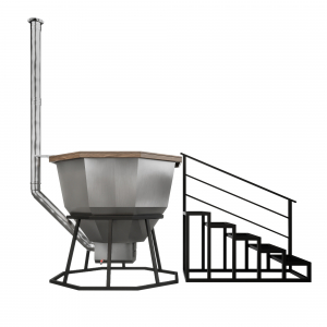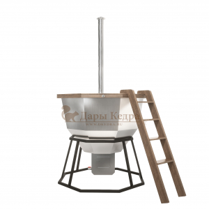 Банный чан из нержавеющей стали Ø-1750 на подставке с приварной печью с водяной рубашкой