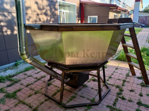 Банный чан из нержавеющей стали Ø-2350 на подставке с приварной печью с водяной рубашкой