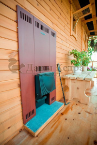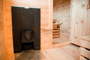 Установка печи с внешней загрузкой позволит сохранить парную в чистоте и сэкономить в ней место. Печь имеет удлиненный топливный канал, за счет чего топку можно вынести как на улицу, так и в другое помещение бани (раздевалку, моечную). Экран из зеркальной нерж. стали входит в стоимость, защитит от неблагоприятных условий внешней среды и от влаги в моечной. Стандартная установка печи - между полками. Боковая установка оплачивается дополнительно.