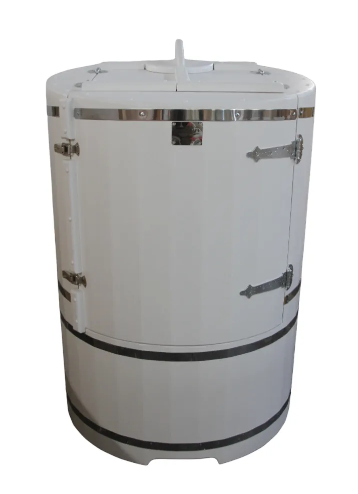 Круглая фитобочка представляет собой мини парную, которую можно использовать не только в спа-салонах, но и дома. Бочка изготовлена из древесины кедра без отбора по сучкам, поэтому такая модель считается более доступной. Фитобочка оборудована откидными створками, дверцей и отверстием для головы. Во время парения человек сидит внутри кедровой бочки, а голова находится снаружи. Благодаря этому исключается возможность перегрева. Подлокотники из кедра, встроенные ручки на створках и двери делают эксплуатацию более удобной.