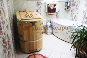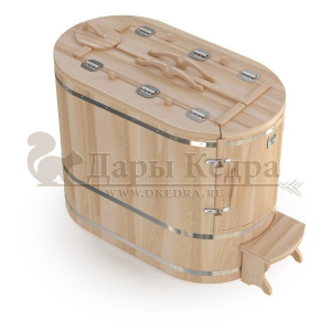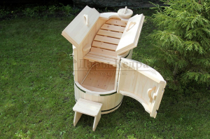 Кедровая фитобочка полулежачая - это мини парная, которую можно использовать не только в спа-салонах, но и дома. Модель этой бочки наиболее комфортна, так как позволяет принимать процедуры полулежа. Толщина стенок составляет 40-45 мм, что позволяет увеличить срок службы изделия. Фитобочка оборудована откидными створками, дверцей и отверстием для головы. Во время парения человек находится внутри кедровой бочки, а голова снаружи. Благодаря этому исключается возможность перегрева. Подлокотники, подспинник из кедра и внутренние ручки делают эксплуатацию фитобочки более удобной.