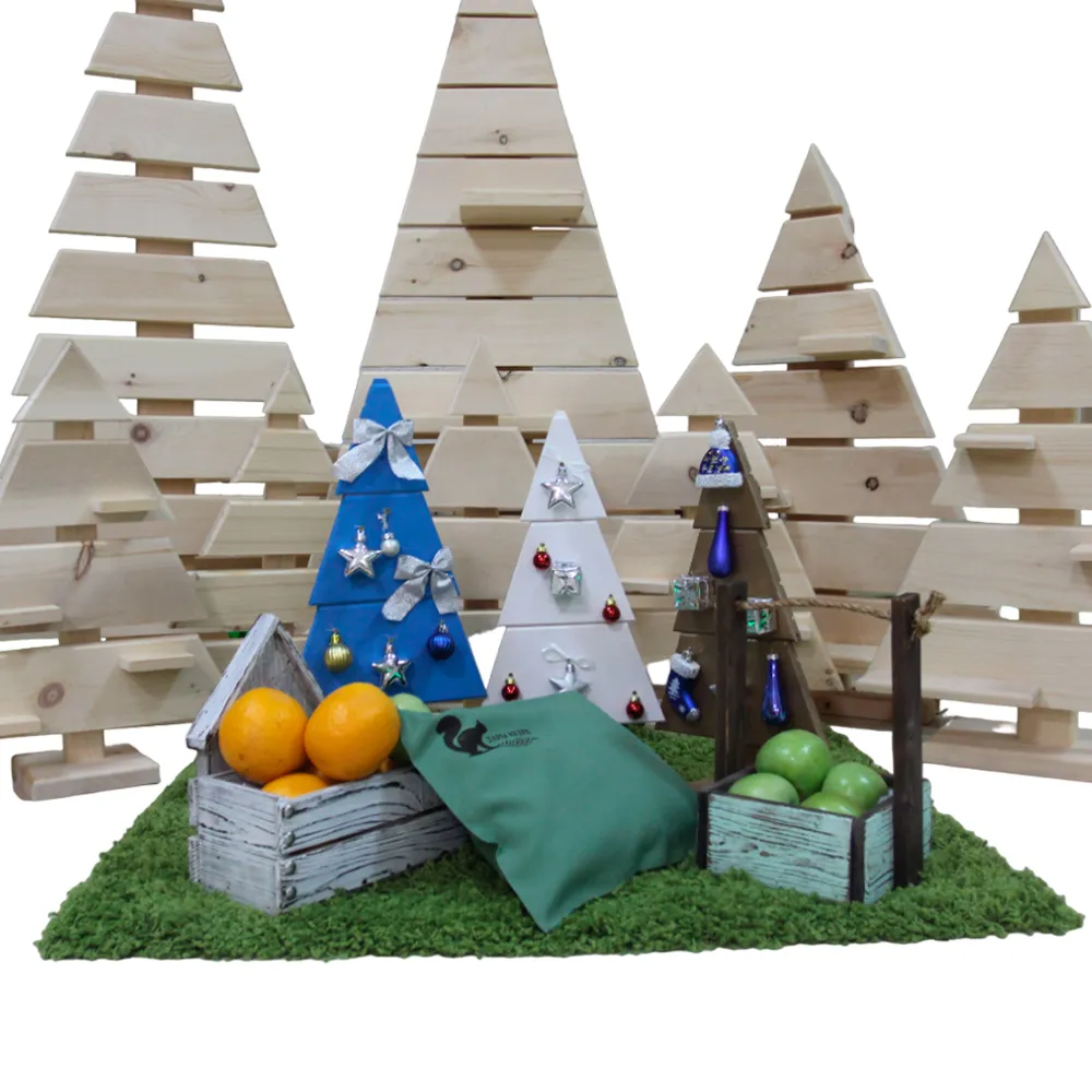 Новогодняя деревянная ёлка с полочками Хотите удивить дорогого Вам человека в канун Нового года? Предлагаем вам большой выбор аксессуаров из кедра, которые не только запомнятся в качестве ценного подарка, но и вполне могут украсить праздничный стол, разнообразить любой офис, стать привлекательным атрибутом в фотостудии. Рекомендуем ёлку из кедра для домашнего творчества с детьми. Создайте неповторимую, единственную в своём роде новогоднюю красавицу, играя с ребёнком. Это внимание и поделку он запомнит навсегда...Уж, поверьте! Деревянная елочка, по Вашему желанию, может быть покрашена в зеленый, белый, серый, фиолетовый цвета или покрыта бесцветным маслом, воском, лаком. Дополните новогоднюю красавицу гирляндой, шарами, бантами, и она засверкает по-новому. Цена ёлки указана без учета украшений. Украшения, представленные на фото, могут отличаться от имеющихся, необходимо заранее согласовывать перечень игрушек с менеджером отдела продаж. При заказе украшений цена увеличивается на 50%.