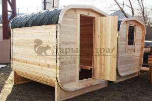 Козырек из кедра - это защита входа в баню и всего фасада от лишней влаги, что, конечно, лучшим образом скажется на красоте и долговечности дерева.