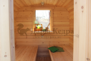 Размер окна варьируется от 120 см до 180 см в длину, ширина согласовывается индивидуально. Добавит света парному отделению, а также визуально расширит пространство.