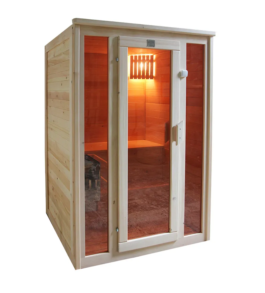 • Двухместная финская сауна кабина из кедра и липы с электрокаменкой Это специально оборудованная готовая деревянная кабина для сухого и влажного парения. Электропечь нагревает пространство внутри и позволяет сбрызгивать камни водой, слегка увлажняя воздух. Такая процедура позволяет избежать перегрева. Сауна обшита снаружи и внутри вагонкой из липы и имеет теплоизоляционный слой. Финская сауна с электропечью подойдет, как для домашнего использования, так и для коммерции. Доставляется в разборном виде щитами, собирается по инструкции с помощью шуруповёрта. Обращаем Ваше внимание, что в стоимость сауны уже включена дверь с закаленным стеклом в раме из кедра с фиксатором и деревянным фасадом справа. Вы можете заменить фасад на цельностеклянный с безрамной дверью за дополнительную плату