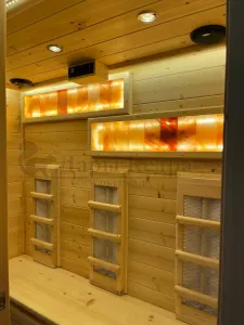Это специально оборудованная кедровая кабина для прогрева тела человека сухим теплом. Воздух в таких парных не нагревается. Инфракрасные лучи воздействуют на тело, равномерно прогревая мышцы, суставы и органы. Керамические излучатели похожи на лампы, имеют высокую температуру нагрева, поэтому защищены противоожоговыми решетками. Тело человека в таких саунах нагревается интенсивнее. Работает кабина за счет электричества. Трехместная инфракрасная сауна с керамическими излучателями подойдет как для домашнего использования, так и для коммерции.